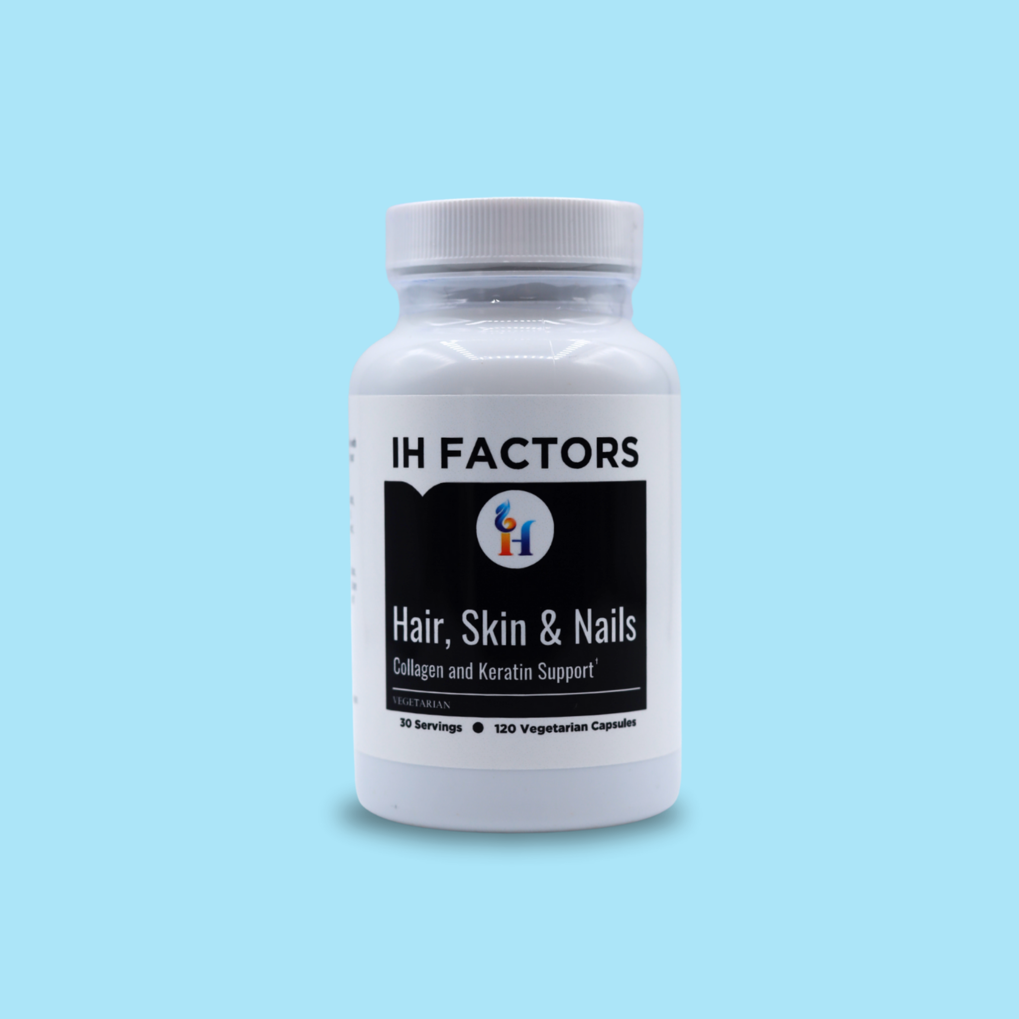Transform your beauty routine from the inside out with IH Factors Hair, Skin & Nails. This powerful formula blends essential vitamins, minerals, and concentrated phytonutrients to support vibrant hair, glowing skin, and strong nails. Many diets fall short of providing the nutrients your body needs to naturally radiate health. If you struggle with weak nails, thinning skin, or hair issues, IH Factors Hair, Skin & Nails is your perfect solution.